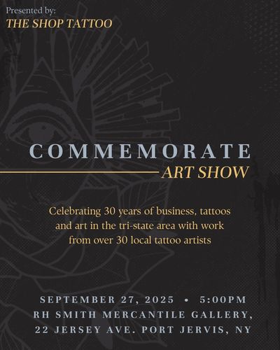 We are celebrating 30 years of business, tattoos and art in the tri-state area with art from over 30+ local tattoo artists. Join us for art, music, food and friends as we start the next 30 years.